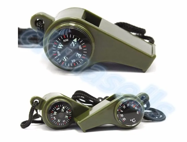 3 in1 Camping Hiking Emergency Survival Gear Whistle Compass Thermometer Outdoor Need ArmyGreen Color